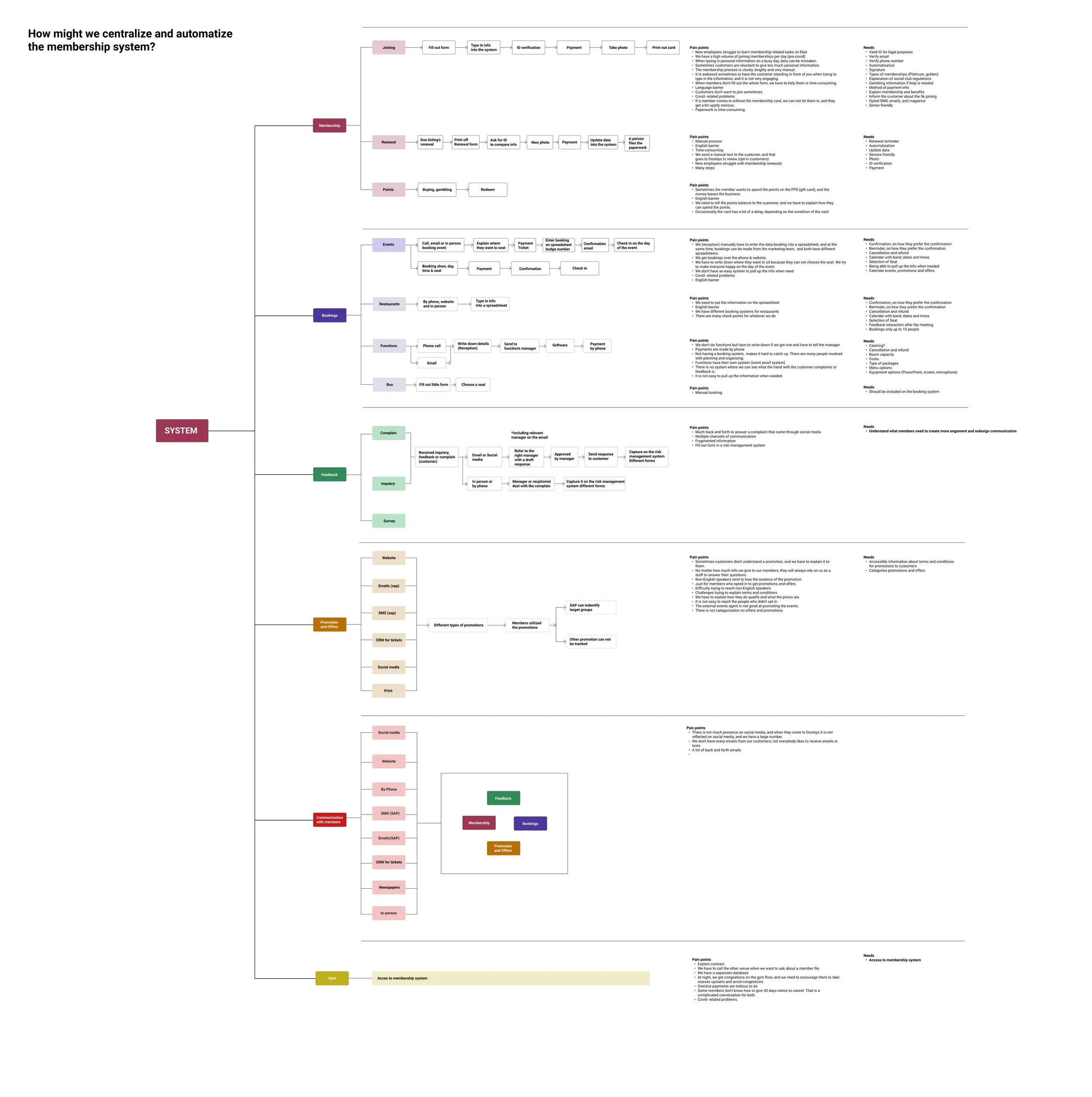 I conducted semi-structured user interviews with frontline employees who deal with the membership process and work at the biggest casino/restaurant location, the gym, and part of the communication team.